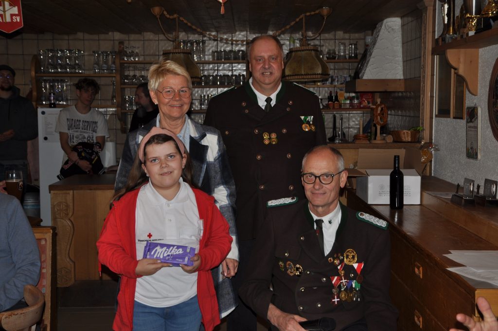 Die Jugend Gildenmeister Matteo Simbeni (li.) und Gildenmeisterin Jessica Bauhofer (re.), OSM Hubert Aufschnaiter (Mitte vo.), Jugendbetreuer Armin Huber (Mitte hi.).